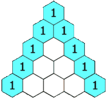 barisan pertama adalah 0 + 1 = 1, di mana nombor 1 dan 3 dalam barisan ketiga